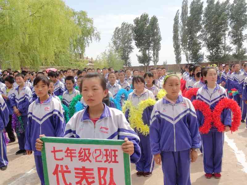 最前面的是七年级一班代表队,他们手中的花束,就像正在发育的他们一样,生机勃勃。迎面而来的是我们的七二班,我们手中的花环,舞出了青春的脚步。最后这是由八年级三个班组成的代表队,他们手中的彩色丝带,挥洒着成熟稳健的步伐。