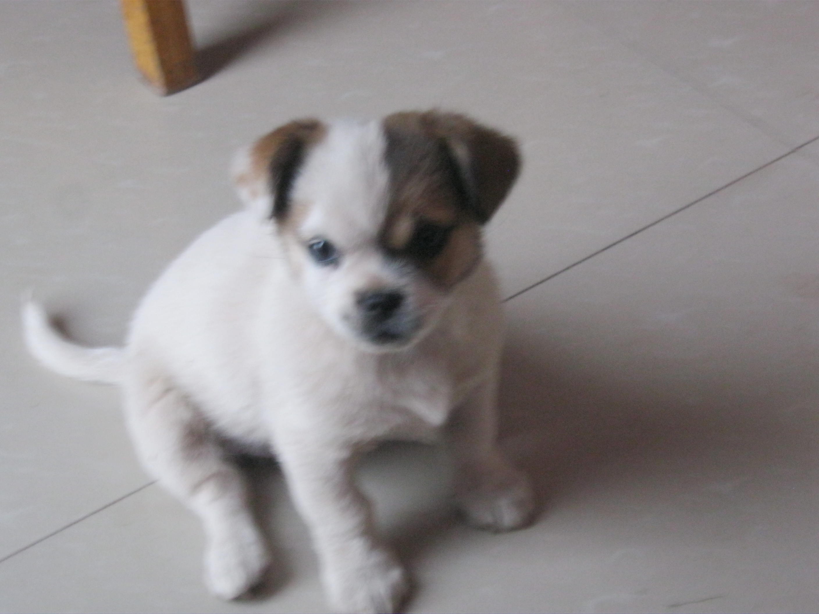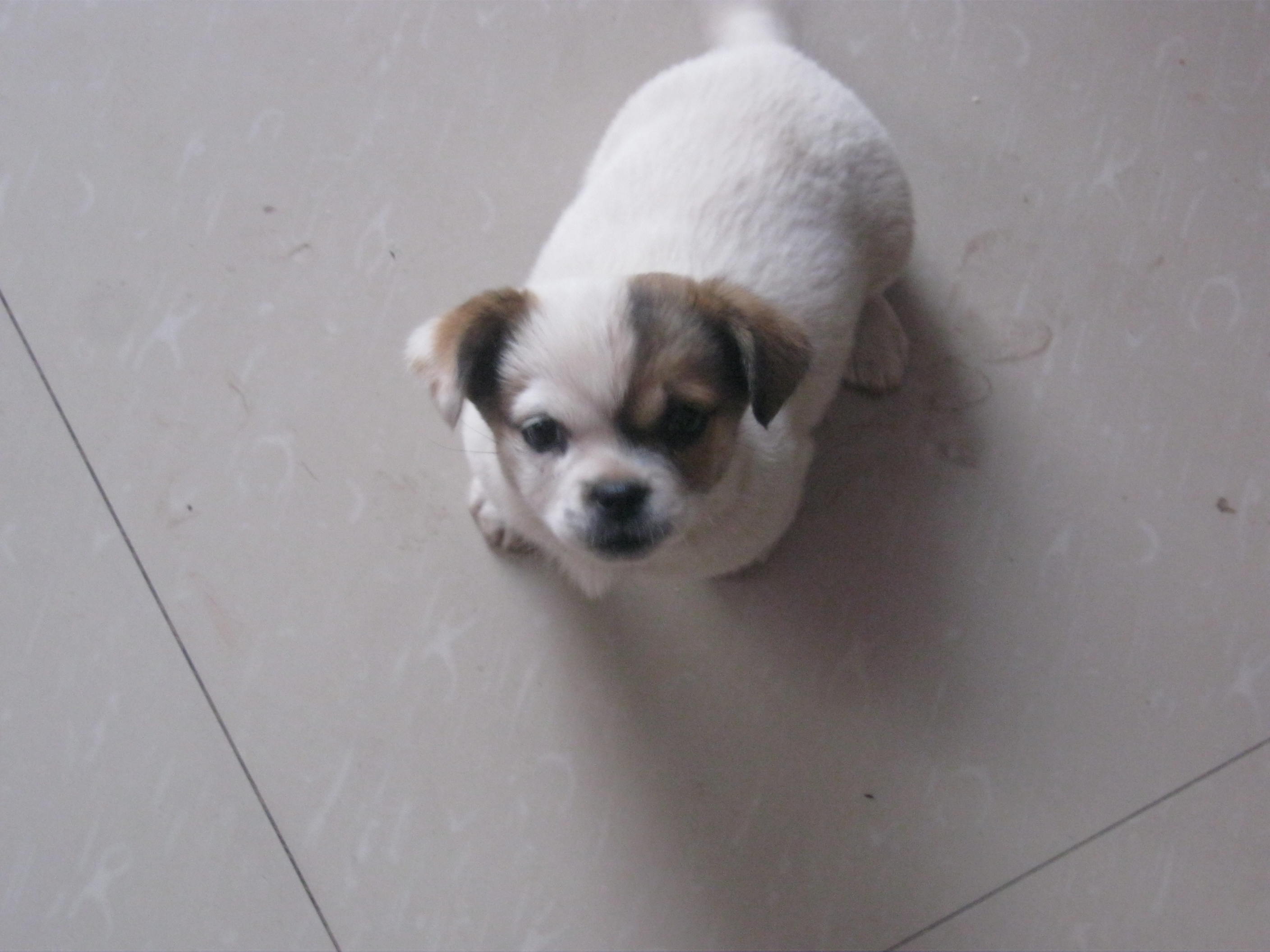 有时候小狗玩累了就会静静的坐在地上,眼睛直直的看着我,我想它可能是希望我给它一些食物吧!我就从厨房找来了吃的东西,它一见我手里拿的食物,立刻 摇着尾巴就跑到了我跟前。