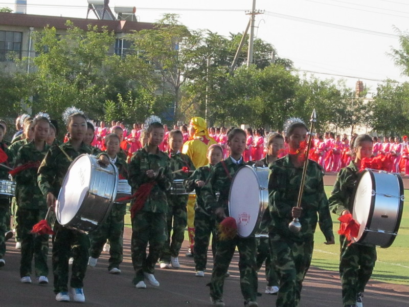 在校长的一声令下"运动会正式开始。"顿时,运动场内鼓乐齐鸣,彩旗飘扬,花团摇曳,喊声震天,整个运动场变成了欢乐的海洋。接着一个个方队依次从主席台走过,每个方队的学生个个昂首挺胸,每个人精神满面像解放军叔叔一样,尤其是我们学校特色表演安塞腰鼓,他们敲打起来又有力,又好听,实在是太棒了。