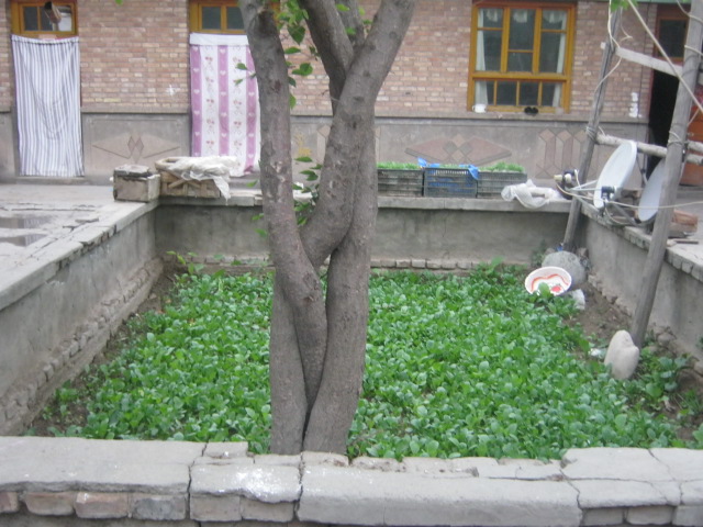 这个花园占地面积大约有15个平米,围墙有80公分高。最可贵之处是花园里面东墙边长了一棵大树,它的存在为这个花园添加了几分"姿色".