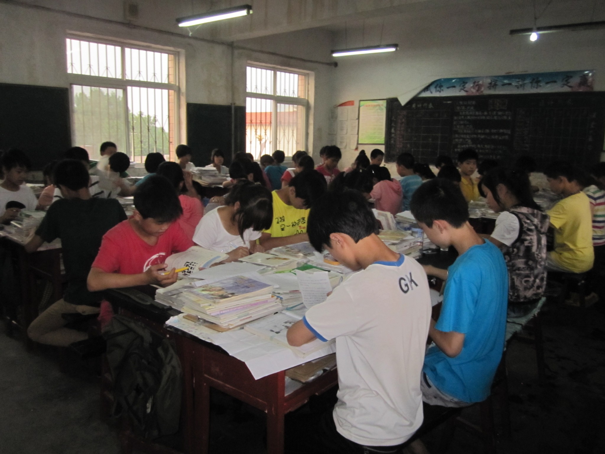 不同的是今天又有一位金渠中学的老师来上课了,他是一位政治老师,经过相处后同学们都觉得她没有那位地理老师和蔼,相反的是他刚进教室就给了我们一个下马威,弄的我们只能认真预习,也是有地理老师的和蔼才衬托出了政治老师的严厉,我没有和他谈什么,只是埋头认真的预习起来。而且今天的三单也打印出来了,今天的三单不像平时那样,导读单、生成单.训练单,在一张纸上,而今天的题量显的特别多,就像卷子那样的纸打印了正反两面,同学们也都开始嚷着苦啊!苦啊!多呀!多呀!而老师只是说了一句很经典的话:"吃得苦中苦,方为人上人。"