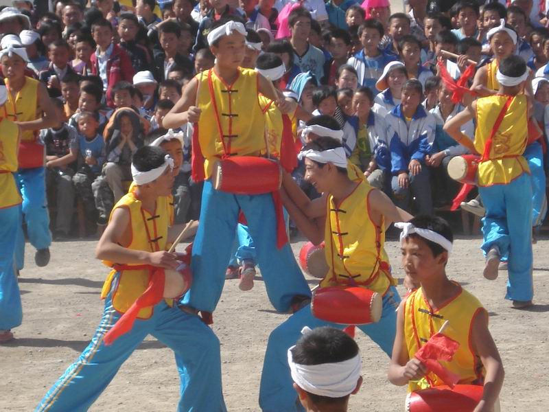 一大早,同学们就排好队在操场上集合了,各个英姿焕发,神采飞扬,瞧那边,安塞腰鼓的同学们都头裹白毛巾,身穿黄色衣服,就像准备上战场的战士整装待命。舞蹈兴趣小组的同学们各个身着少数民族的服装,让人感到仿佛置身于草原之中。