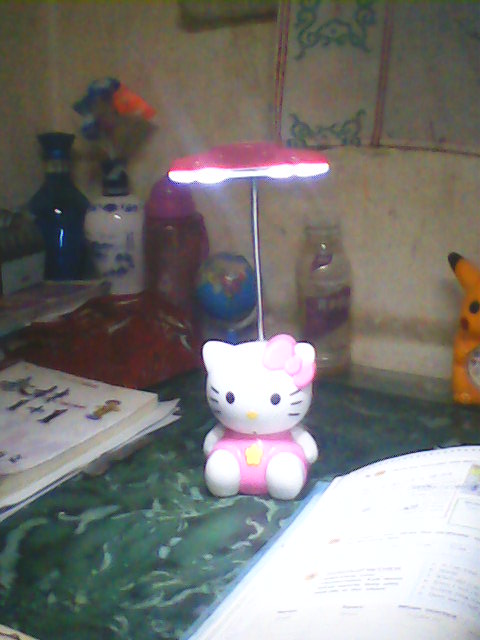 为了方便我的学习,我买了一个台灯。这个台灯是我在各个商店精挑细选出来的。它的外形是我最喜欢的地方了——她是"HelloKitty"。