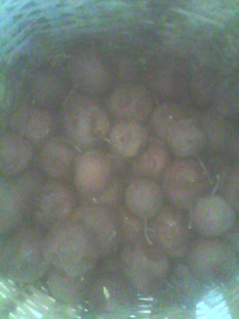 于是,我把它们放在菜盆中,加上凉水,再加一点热水,用手洗去它们身上的灰尘和油泥,然后,又扯去冬果的果皮,最后,把它们放在另外的干净的盆子中,洗冬果的事情就做完了。