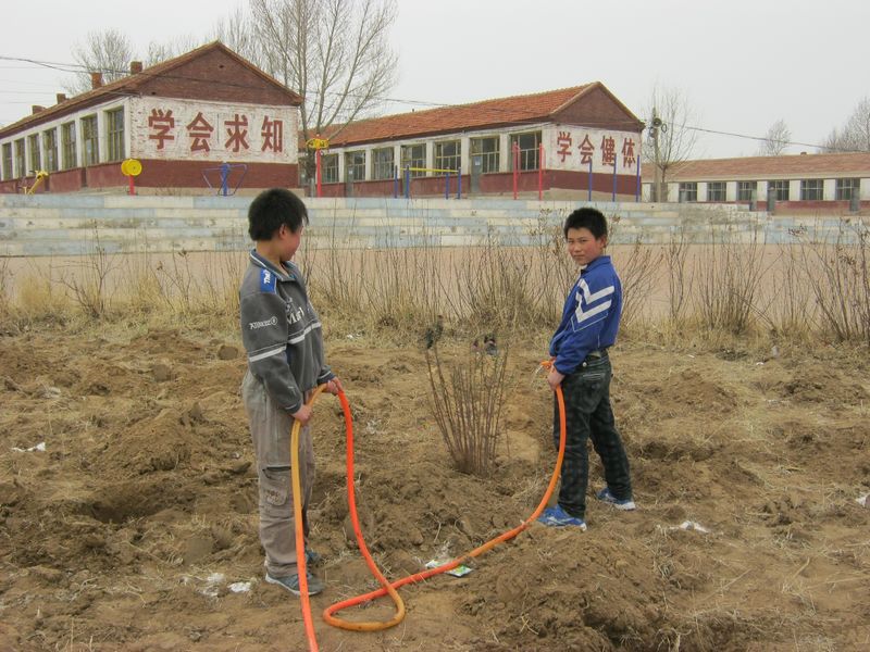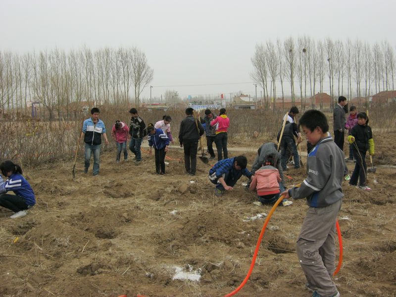 眼看树苗就栽种的差不多了,应该浇水的时候了。同学们把水管又拉到了地里,准备给刚栽好的小树苗浇水了。这次的浇水与上一次浇水有点区别,谁能完成这次的任务,大家争先恐后去争夺这任务。