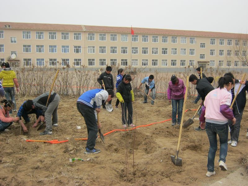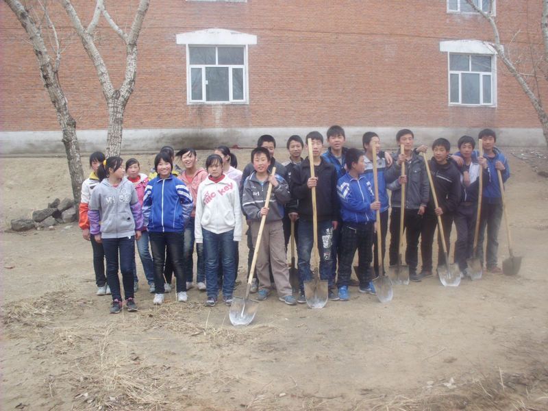 当所有的栽种任务完成时,同学们非常高兴,便让老师给他们照个合照,来留个纪念。因为这次种植小树不仅是美化校园,而且是在"蒲公英基金会"的支助下的活动,大家认为很有纪念意义,尤其是受助的贫困学生,他们把这次活动当作回报"爱人心士"的一部分,在劳动中表现尤为突出和积极。