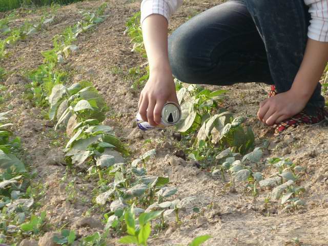 种稻豆也不是简单的活,下种前得预先把种子用水泡涨,出芽率才高,容易早发芽。对于地里沙土地就多挑一些土,然后撒在地里,有利于保存水分,即使几天不浇水稻豆也不容易干枯。天旱时也要勤浇水。可别小看浇水简单,它的学问可大着呢。必须用水杯慢慢着滴着浇,浇太快水就流到别处去,还要一边浇一边堵。下种子时还要等到水渗下去才可以,要不然种子可能会冲到别处和其它种子挤到一起,会影响它未来的长势。播种的行距和株距也得把握好分寸,均匀地一穴一个种子才会使稻豆达到高产。