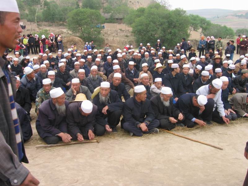 这时一大群邀请的阿訇从门里进来,坐在炕上念了起来.那声音忧伤极了,客人们和亡人的亲人都跪在地上静静的听着,思念着亡人.厨房里的妇人正在忙碌着,因为阿訇念完索儿,就要将食物端上去.开始端上去的是果碟,水果必须是五种以上,果碟就是将新鲜的水果切成花样,放在碟子里,为了美观摆成各种各样的花饰!,就叫做果碟]人人都有份,吃过后.将做好的菜舀到碗里把香腾腾的牛肉或羊肉放在菜上面,端给阿訇.等阿訇和大辈的老人吃完后,我们才能吃.