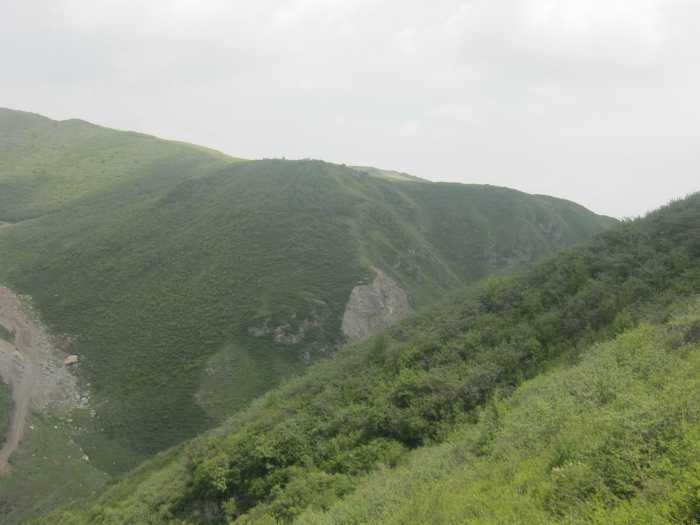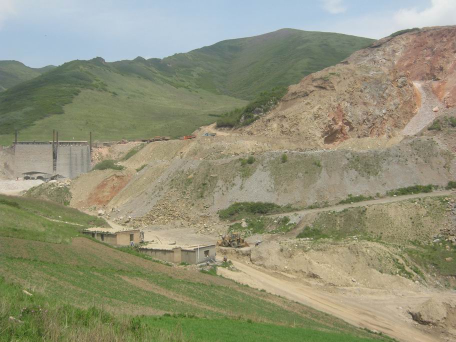 顺着路一直往里走,就会看见正在开采中的石矿了,可是石矿有专人看管,不让我们进去,我们只好爬到对面的山上观察,那些嶙峋的大石头就是石矿了,还有许多等着拉货的大卡车在排队等候,不时听见轰隆隆的机器轰鸣声,真是繁忙的景象啊。