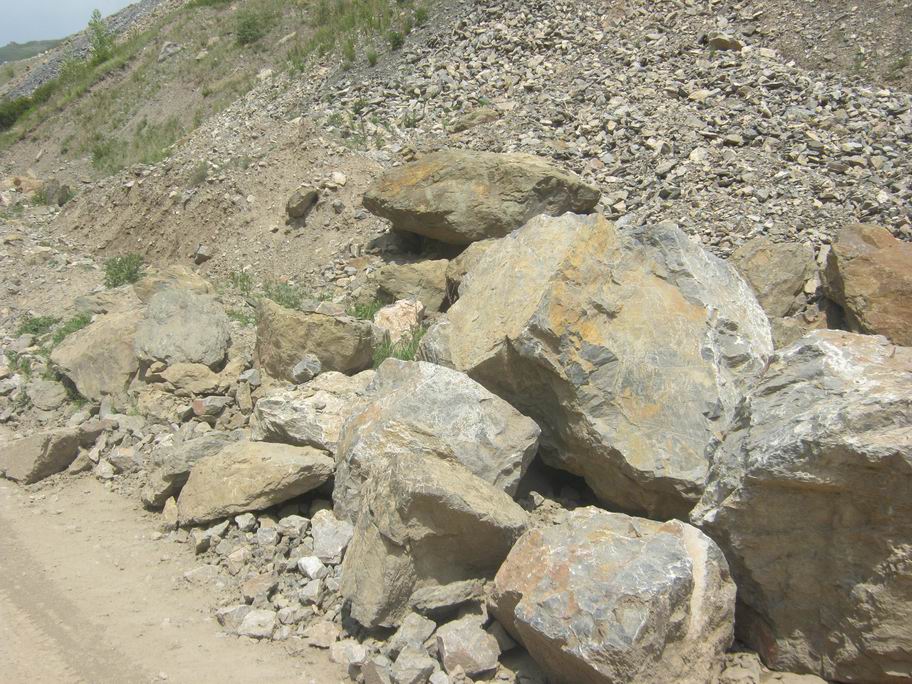 开采出的石头滚落到山下,好大啊,有的有一人多高,别看这些不起眼的石头,它们可是有大用途啊,我的家乡正在修铁路,这些石头就是最好的路基石,还可以拉到水泥厂制成水泥,盖高楼大厦,真是不简单呢。我的家乡很贫困,可是也为新中国的建设做出了贡献,作为西部的孩子,真感到自豪!