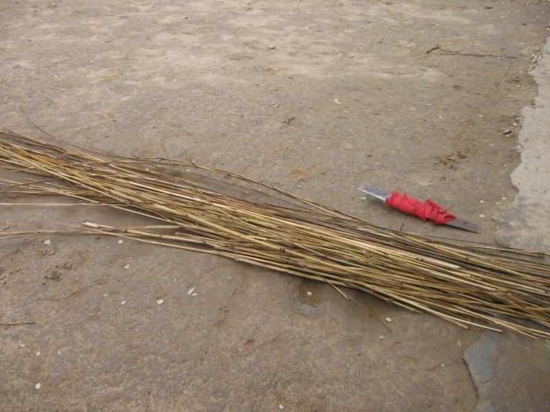 想要制做一个背篼,必须要有制作的工具,如刀子、细绳子。材料有两根柔软的小木棒、竹子或柳条。