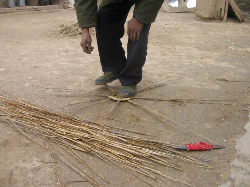 这时,就开始用潮湿柔软的竹糜先编一个小底。