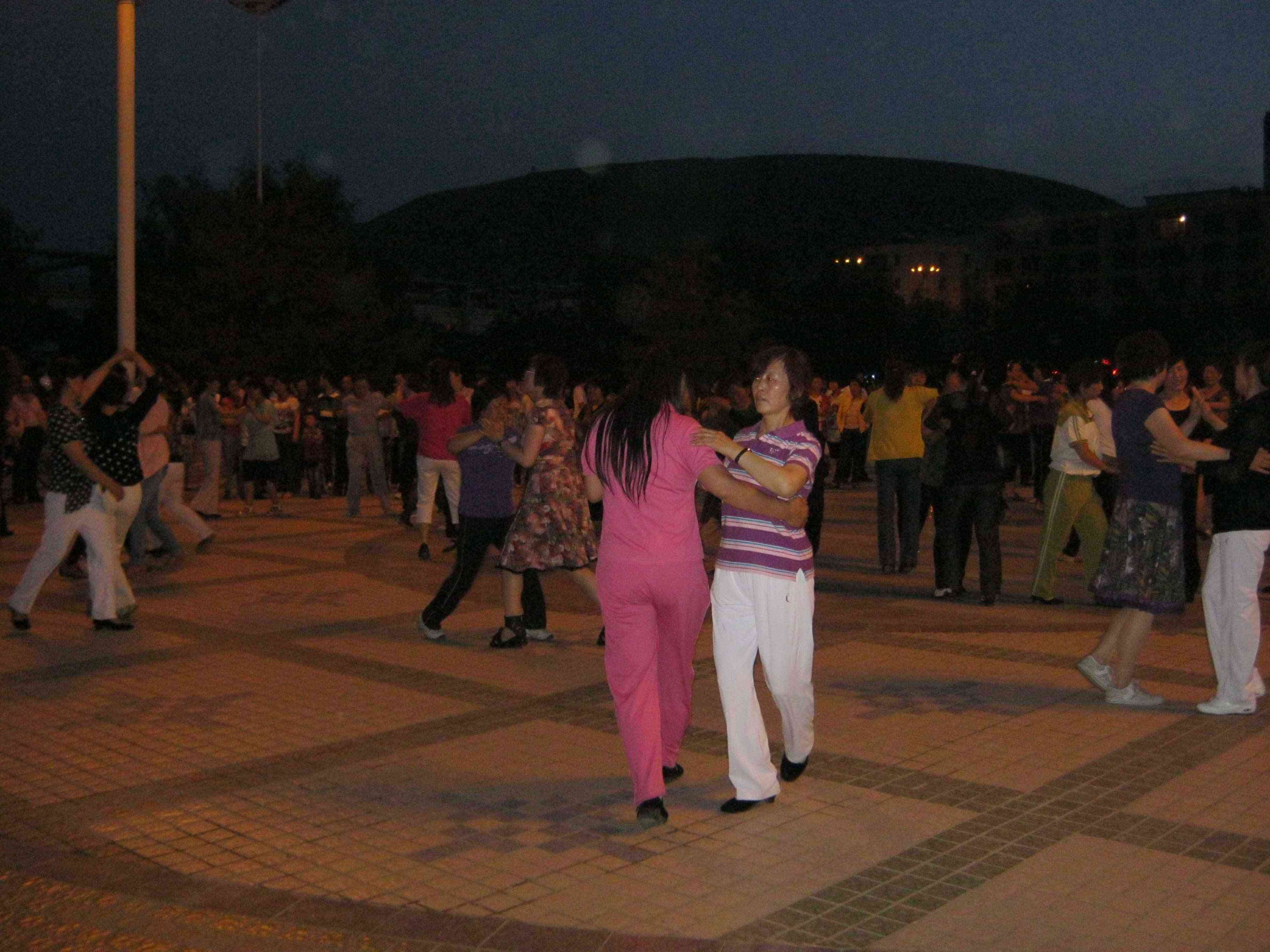 搬家后,广场就在门口,所以每当闲下来时都爱在广场走在。当我第一次见到他们时,他们正忘我的打着腰鼓,那浑厚而有力的腰鼓声,那节奏鲜明的舞蹈,使我不仅沉醉。后来,只要不下雨,在这个小广场上都会出现她们的身影。当然,更多的时候他们是在跳舞,后来我才慢慢地发现,这群阿姨都是将近五十多岁的人了,可她们似乎根本不在乎自己的年龄,她们热衷于舞蹈。
