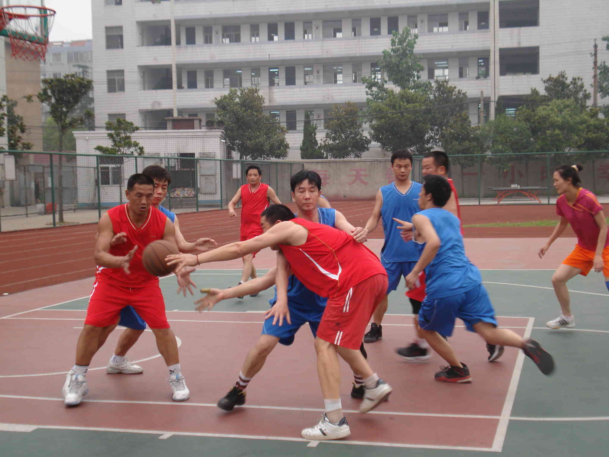 冲冲跑到了操场上,出现在我们眼前的便有身穿红色球服,身材高大,精力充沛的之江中学男子教师球员,这些老师都是我们之江中学体育界的精英和骨干;而面对挑战的则是身穿蓝色球服,身材较矮,但却不甘示弱的羊木中学男子教师球员。从体型上看,我们队具有较大的优势,但到底谁是赢家还得比了才知道。