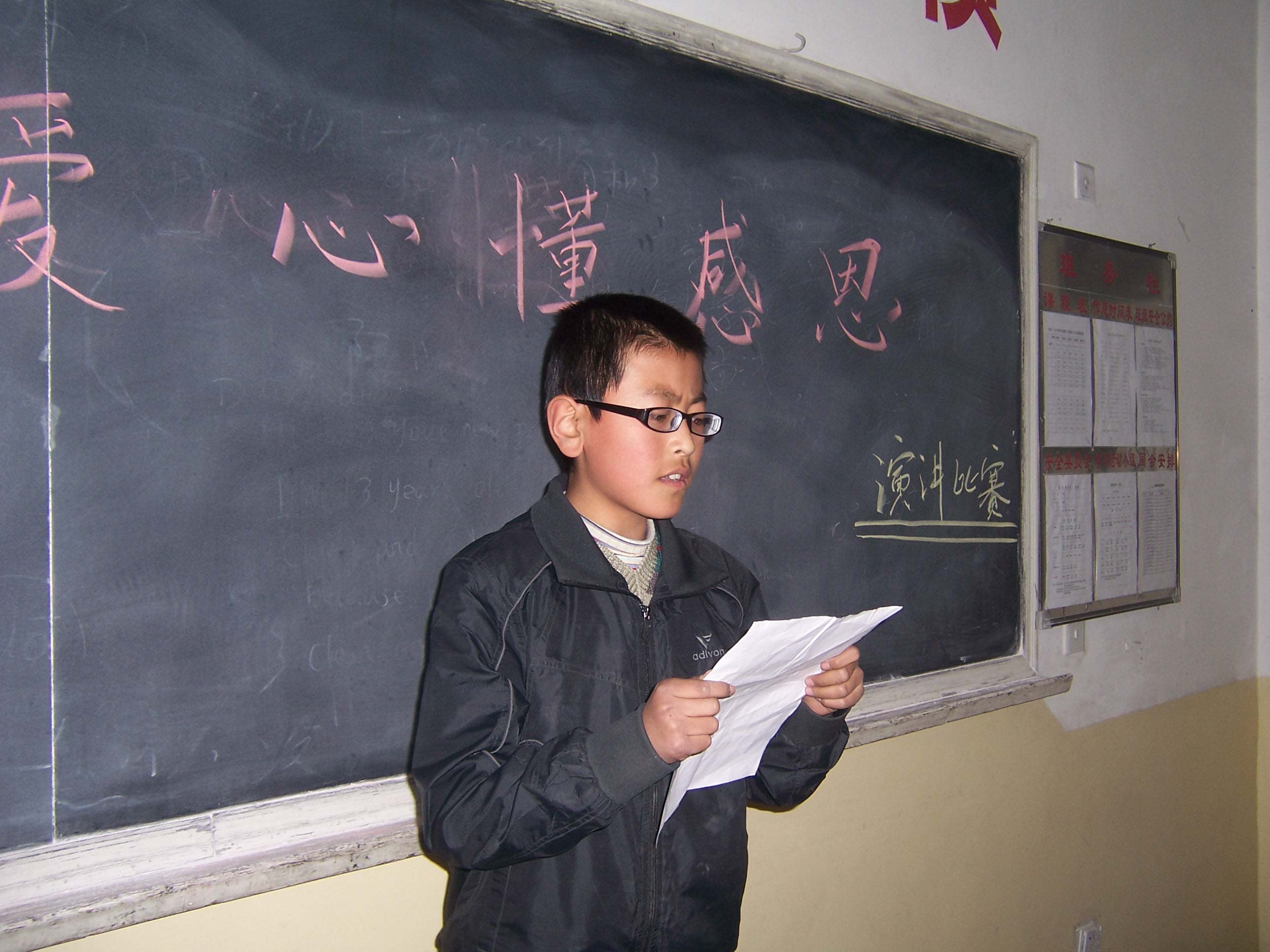 记得有一次,胡盼让他把练字纸拿给语文课代表。只见他拿起纸张,灵机一动,把纸平稳的顶到头上,小心翼翼的往前走,生怕纸张掉下来。这时,宋建军偷偷的溜到他身后,然后轻轻一吹,纸张便像一只大蝴蝶似的,轻盈的飞向地面,与大地来了个亲密接触。他一愣,然后转过身去,两个大眼睛圆鼓鼓的瞪着宋建军,接着便咧开嘴笑了。周围的同学也被张堰荣逗笑了。