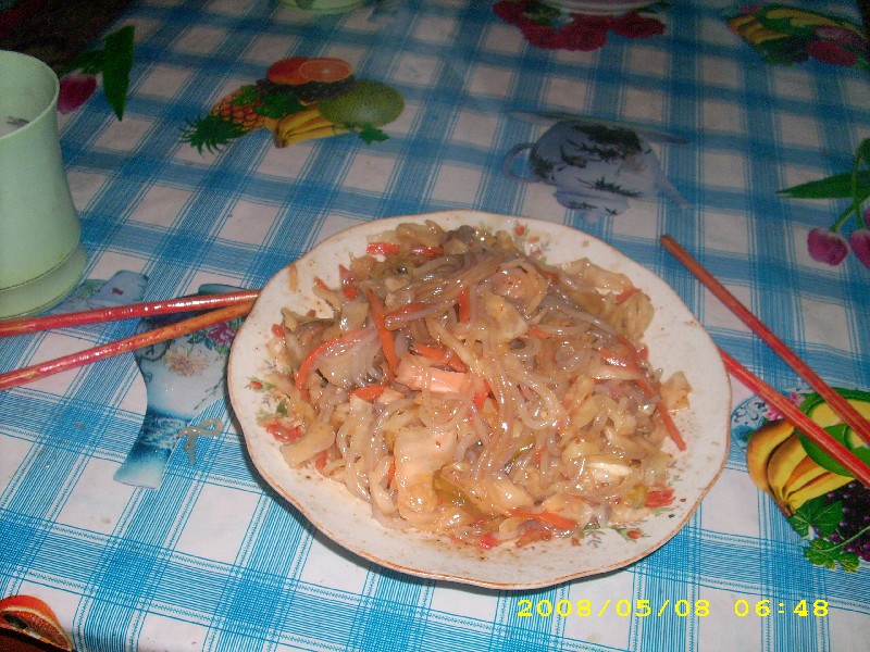 酸菜有很多种吃法,我们这里最常见的吃法是酸菜抄粉条,首先我们在锅里放上油,切上一些肉,然后我们等油过了之后 ,把切好的肉放在锅中,然后把酸菜和粉条放进锅里,再放上调料,等过了五分钟后,我们就可以吃上美味可口的酸菜了.