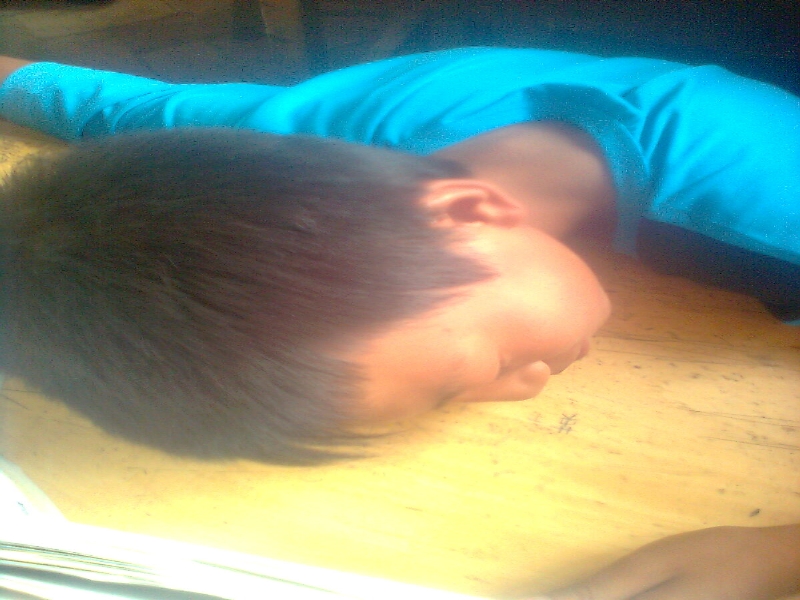 许多同学为了考出好成绩,脑子差点超负荷了。同学学们晚上加班,白天认真复习。有时,同学们太劳累了,上课时有的睡觉,有的打盹。