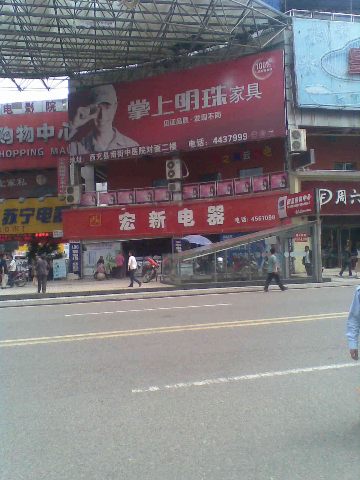 这是西充县的一个最繁华的街道,这个地方是西充县的东门桥,可见大大小小的商店层出不穷,正说明此地是西充的商贸中心。