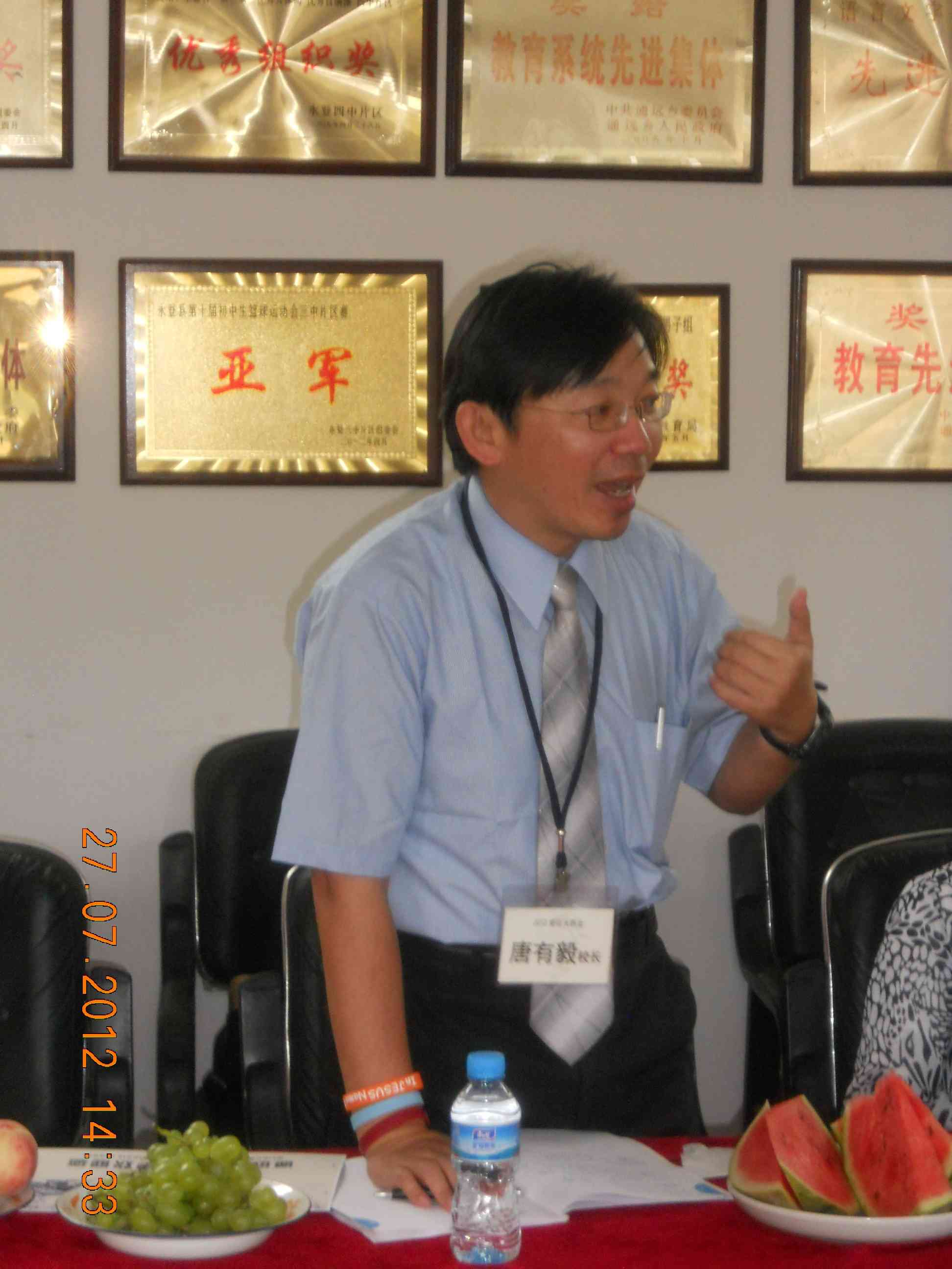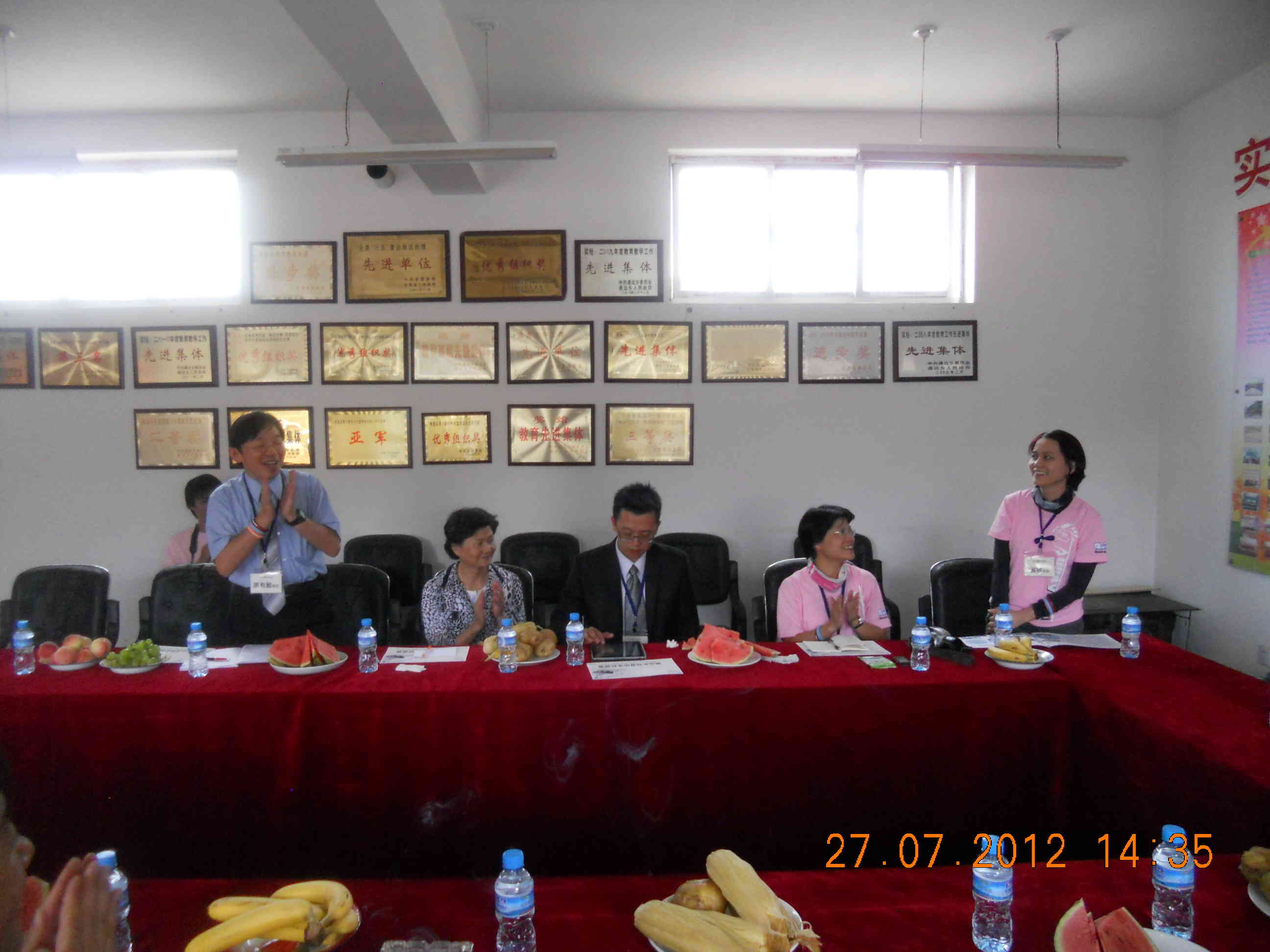 2012年7月27日台湾花莲飞扬成长中心萧师母、唐校长、蔡博士、邱校长、郭老师和萧老师一行6人对我校交流走访。