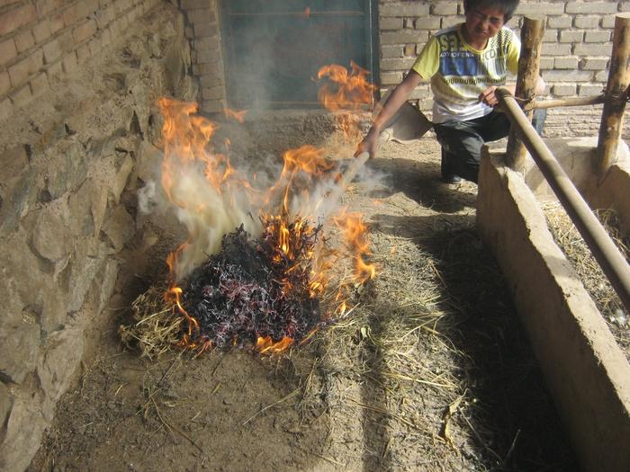 是这样,在豆子成熟后,将豆子连同他的壳和秧一起放在火上烧,烧熟后的豆子味道很好很酥,真是别有一番风味。