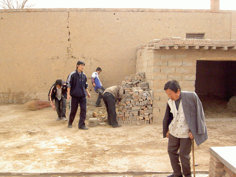 兵分两路,几个男生来到一家有腿疾老人的"豪宅"里,看到无人收拾几近破败的院落,大家心里挺沉,二话不说,便帮老人把院落打扫干净,歪脚的坑凹给平整了,就连墙角的破砖烂瓦也给堆砌整齐.老人拄着拐子在平整一新的院落里拐来拐去,嘴唇哆嗦着不知在说些什么呢.唉,人残猪狗嫌啊,愿天下残疾人都能得到更多的关心和帮助.