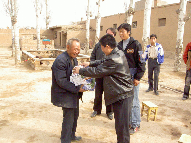 看到了吧,多么丰厚的礼品!这是学校政教主任代表学校向敬老院赠送的一些生活用品,并附带了许多祝福的话语。这位老大爷激动地一个劲儿说着些感激的话。幸福的笑容洋溢在他的脸上,迟迟不能抹去.我们也被感染了,心里充满了暖洋洋的感觉。