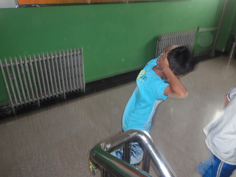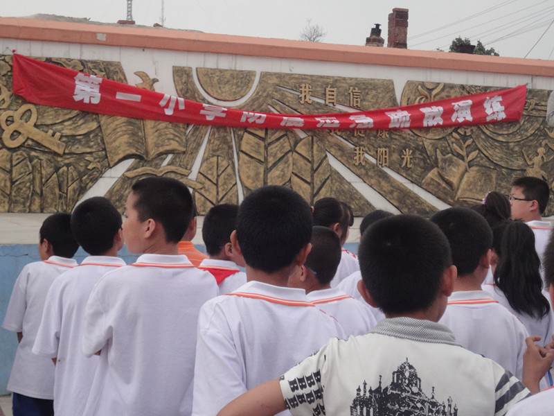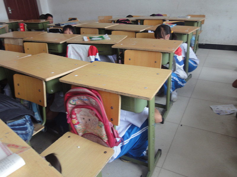 随着一声警报的响起,我们开始了避震演练。老师告诉我们:听到警报声,要先躲在桌子下,一只手遮住眼,另一只手则抓紧桌子腿。警报完毕后,前四排成一条龙从前门出去,后四排也按这样从后门出去,知道了吗?警报响了,我们按老师说的,有秩序地进行了逃生演练。到了操场上,我们迅速集合,听了范老师的讲话,我感悟很深。