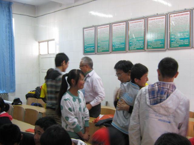 按照学校的安排,首先是全体师生都在媒体室与远道而来的老师们交流。其中,带头的黄校长,虽然是一名女性,但她的领导能力确实令人佩服。她们此行不仅是为了来看我们,还有一项重要的事情,那就是捐资助学,给我们学校的贫困学生发放一些学习经费。照黄校长的话,她们是带着爱心前来的,就是要在海峡两岸之间架起一座爱的桥梁。我听着那些老师热情洋溢的讲说,才明白,在不同的环境、不同的信仰下,追求幸福的愿望是相同的!