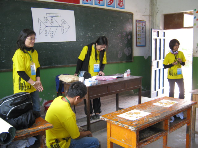 我们的课堂总是充满乐趣的,不仅仅有游戏时的欢笑,还有对于人生的探讨。就像老师讲的"鱼骨法"——通往成功的路不止一条。"不可叫人小看我年轻,总要在品格、爱心、信心和行为上作众人的好榜样。"还有"信、望、爱"。她们还举了好多例子。我想,台湾老师的到来,教给我们的这种爱心,在平时,我们根本接触不到,她们的用心良苦,只为在两天的短暂时光里,让我们有所收获、有所成长……