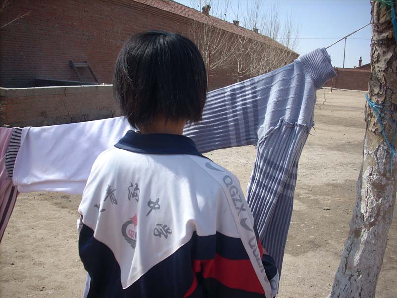 你瞧!奶奶又在为我洗衣服了,我还给她打下手呢,怎么样,我们幸福吧!