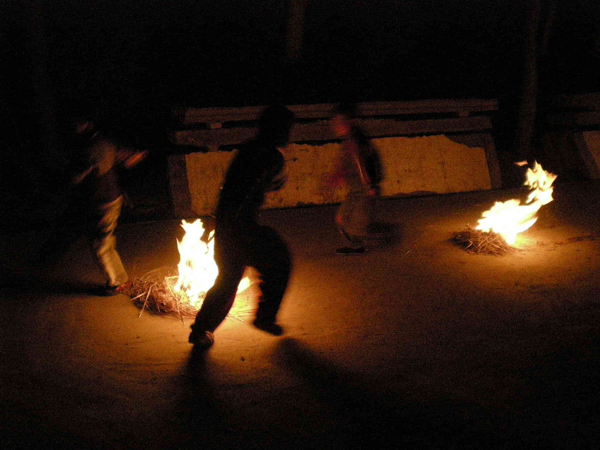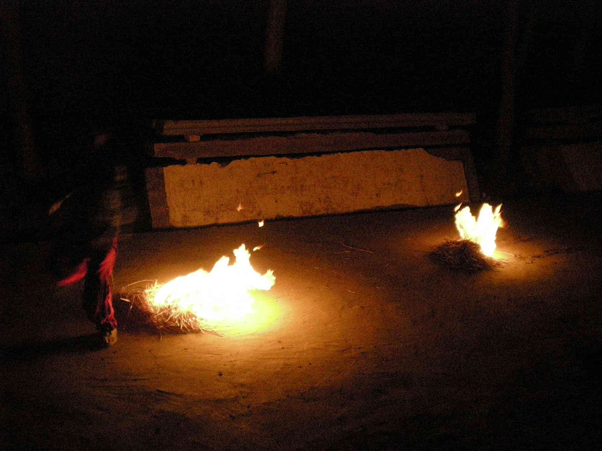正月十五晚上,吃过元宵,人们在自己门前点燃数堆麦草,男女老幼跨火而跳,俗称\'\'跳冒火\'\', 意为来年风调雨顺;事事如意.