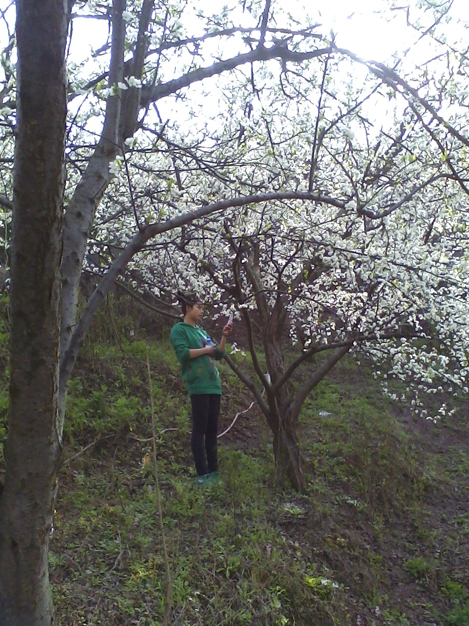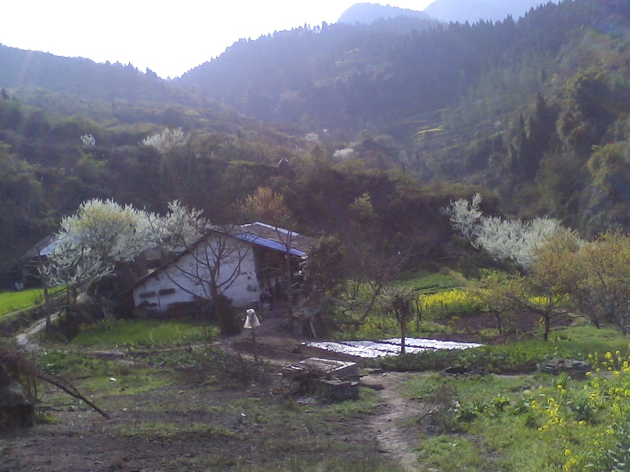 我们一路上嘻嘻哈哈的,倪说我笑的,很快就来到了目的地,站在原地一看,哇!好高,好笔直的山路我们竟然这么快就来到了我们所到达的方,在这儿我们找到了迷人的风景,迷人的花香,洁白的一片全是樱花,在这儿我们争先恐后的拍照,拍了很多的照片,真的是很高兴。 在樱花的周围就是坐樱花园的主人,远远看去就像漫画一样的房子,也像世外桃源,我们就在这儿便停下脚步慢慢地观赏樱花,享受那风夹杂着樱花香味的味道