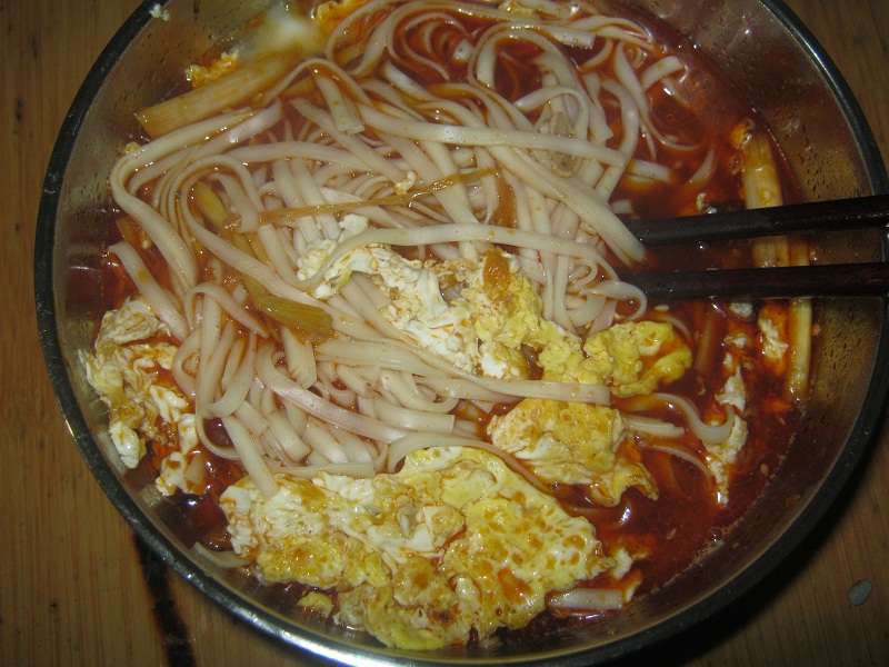 一到厨房,我就迫不急待的找寻"目标",妈妈从热气腾腾的锅里,捞出面条和鸡蛋,一上桌,我便像刚从牢里放出来一样,如狼似虎地吃着那香喷喷的面条。