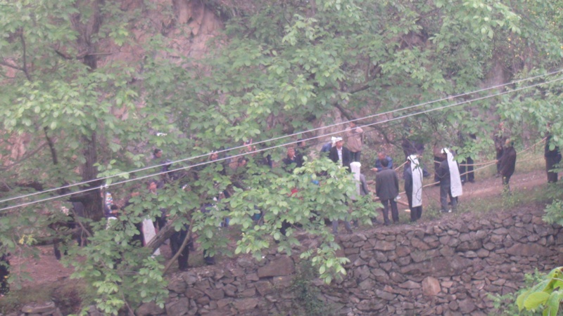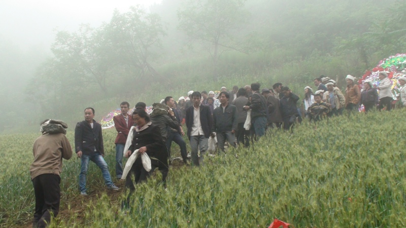 山上有一块其亲属早已选好的墓地,浓浓的雾气中死者下葬了。愿其在天之灵得以安息!