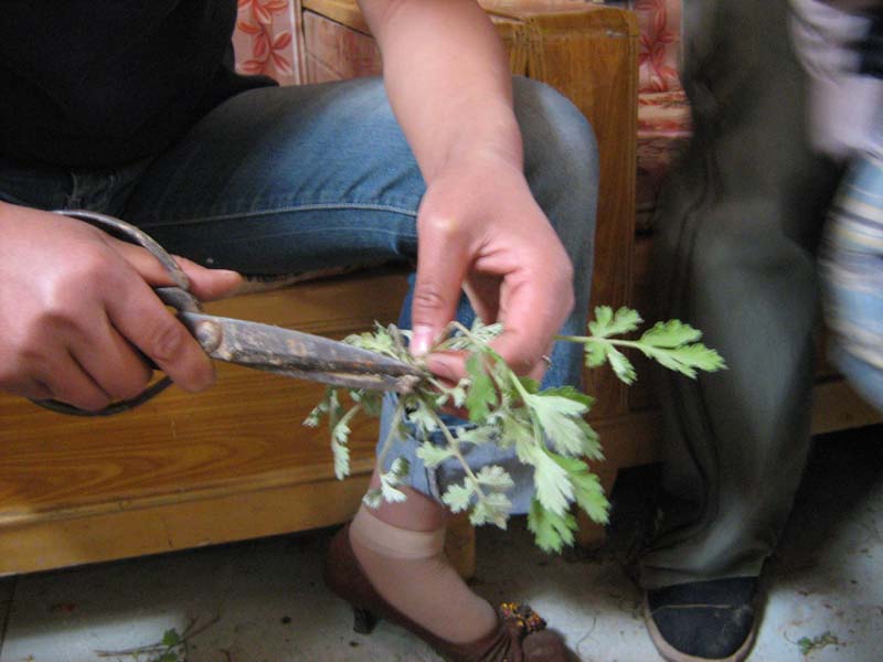 择艾是比较麻烦的一道工序,野艾采摘回来后,要一朵朵的将根部掐掉,将一些残茎败叶都清除掉,只留下新鲜的来食用。把择好的艾用清水多冲洗几遍,去掉身上的泥土后,就可以蒸制了。