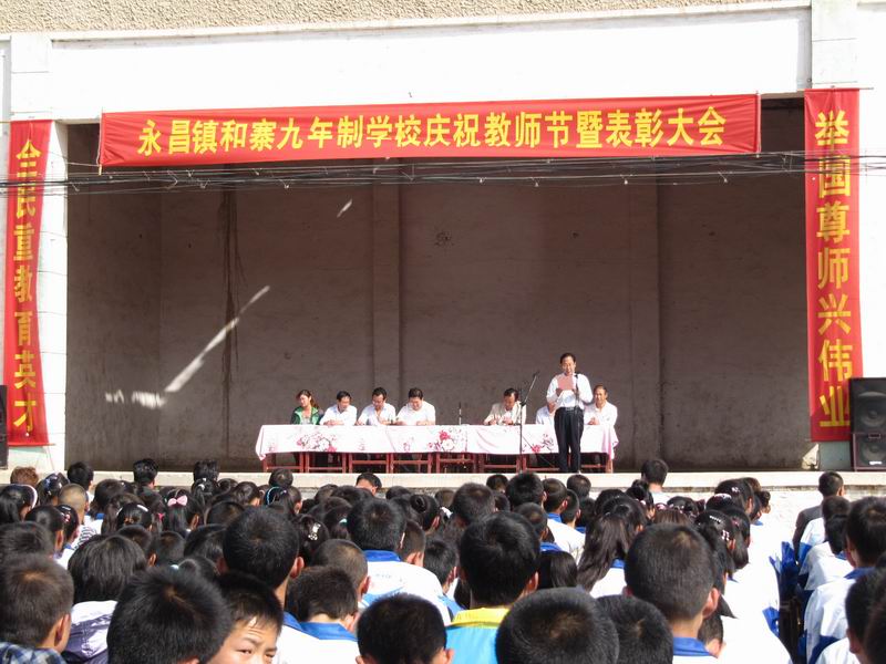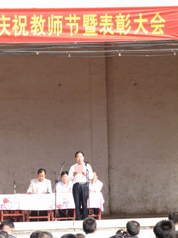 最后,我送老师们一首诗:"四度春风化绸缪,几番秋雨洗鸿沟。黑发积霜织日月,粉笔无言写春秋。蚕丝吐尽春未老,烛泪成灰秋更稠。春播桃李三千圃,秋来硕果满神州"。