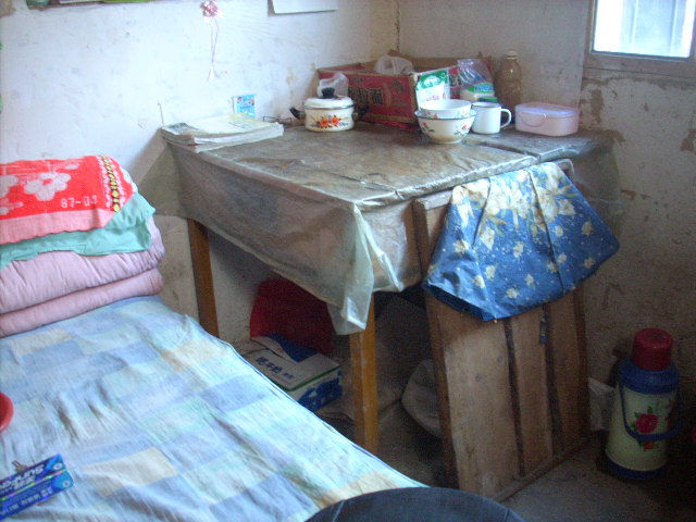 一个桌子一个凳子几个碗组成了我们的家.尽管它显的很寒酸,但它在我们的心里就是天堂