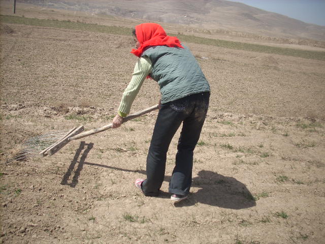 冬小麦经过一冬的沉睡也不甘示弱的探出了嫩绿的幼芽。每年的现在气候异常干燥,又少雨。可怜小麦只能在夹缝中生活,所以聪明的人们想出了最好的办法。用耙子将很硬的土块拉到另一边。