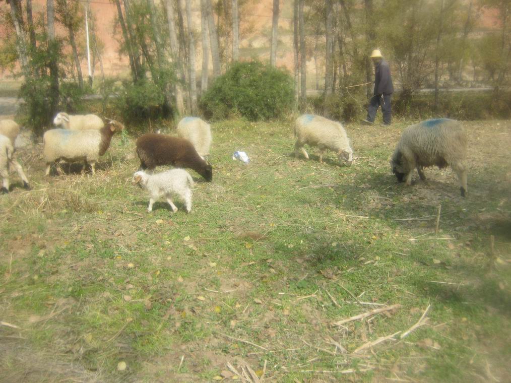 放学后天气还早,爷爷叫我和他去放羊,我们家的羊和邻居家的羊一共有二十多只,我们两家轮着放羊,这样可以省出时间干其他的农活,为了区分我们两家的羊,就在我们家的羊身上都在背上涂上了蓝色,我和爷爷把羊赶了出来,朝河边走去,因为那里还有青草。