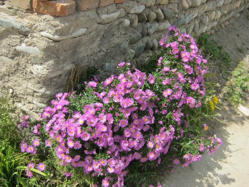 天我去我的同学马金花家去玩,回来的路上在一户人家的拐角看到了一丛菊花。花儿开的正艳,浅紫色的花朵在微风中摇曳,好像在向你问好。