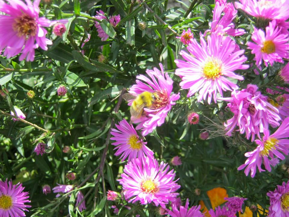 忽然耳根传来一阵嗡嗡的声音,原来是一只调皮的小蜜蜂来了,突然让这幅菊花图活了起来,它轻盈的在这些花朵上飞来飞去,在这多花上停一会儿,在那朵花儿上停一会儿,一点也不知道疲惫。