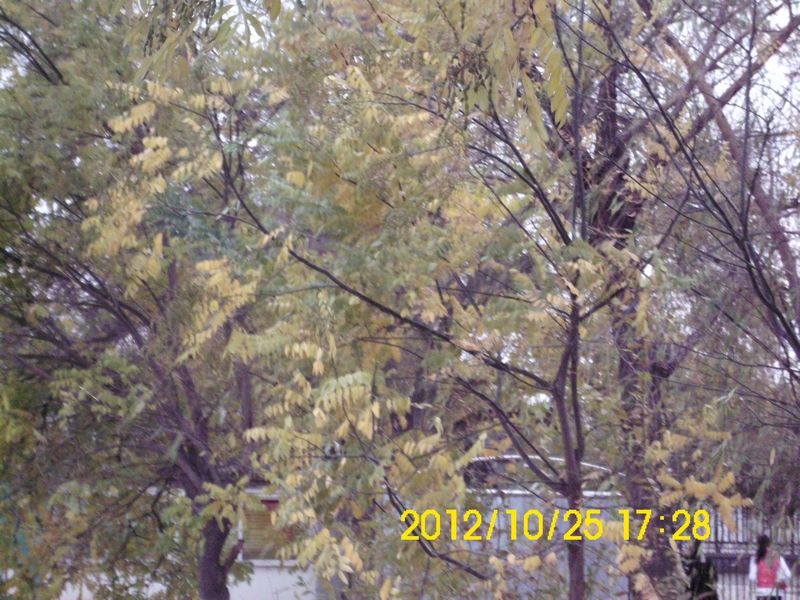 秋天到了,小鸟们离开了大树的怀抱排着整齐的队伍向南方飞去,大树因为小鸟的离开而伤心地落下了眼泪---树叶。
