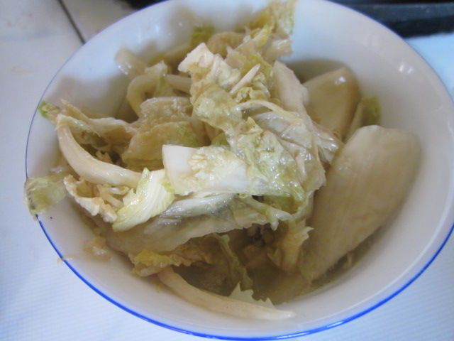 于是,我催妈妈快点腌菜。妈妈让我帮她忙,我当然很愿意了。我们把胡萝卜洗过后切成丝,自家的卷心菜可以切成块,而大白菜可以整个泡。菜要洗好几遍才可以放到缸里,我用了好几桶才洗干净。把菜放到缸里,然后放大量的盐,花椒和生姜,最重要的是要放冷水浸泡,这样才入味,