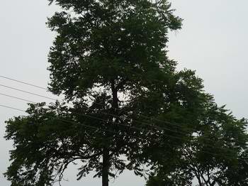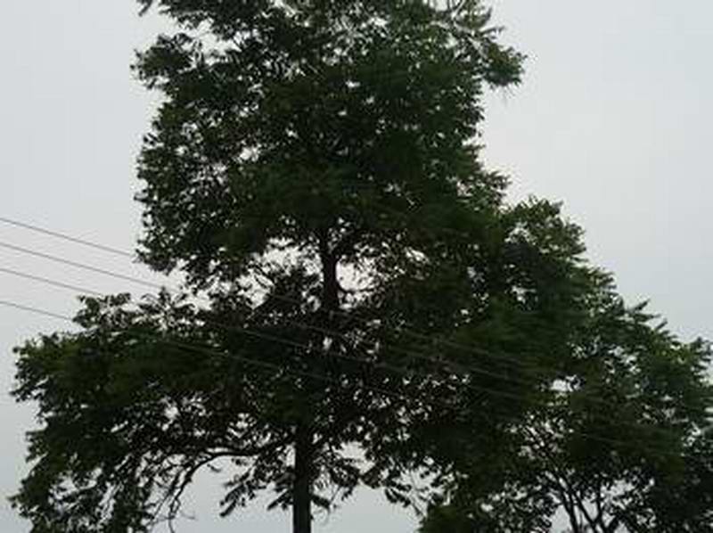 在我们村口有一棵洋槐树,它已经大到两三个人都抱不住。据说它是风水树,所以人们都不去砍它。便将其视为"神树"。