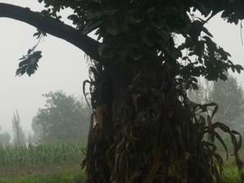 我小时候听奶奶说:"以前,村子后面有一棵树,和这棵差不多大小,可是因为碍地方,所以被砍了。可这年死了很多人。"于是我便从妈妈与景奶奶那里得到线索。可是这是真的,于是我从小便对这所谓的神树有一种无形的怕,可长大后也不再怕了。