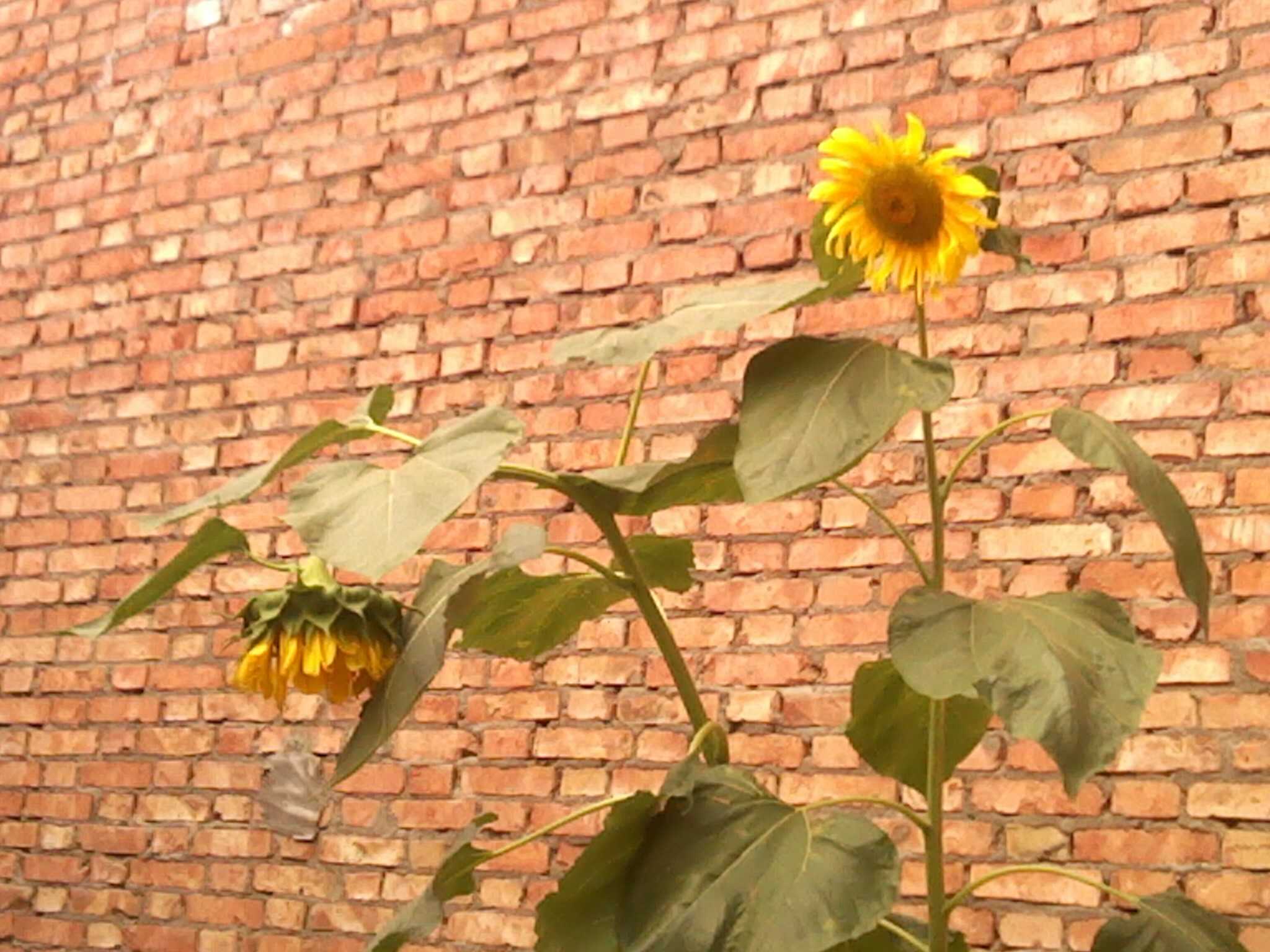 我种的向日葵长得非常旺盛,它们个个都长得比我家的房都高。那也可能是我经常呵护它们的原因吧!因为从种下我就每天给它浇水施肥。要是有空就站到它面前,和它聊上几句知心话。