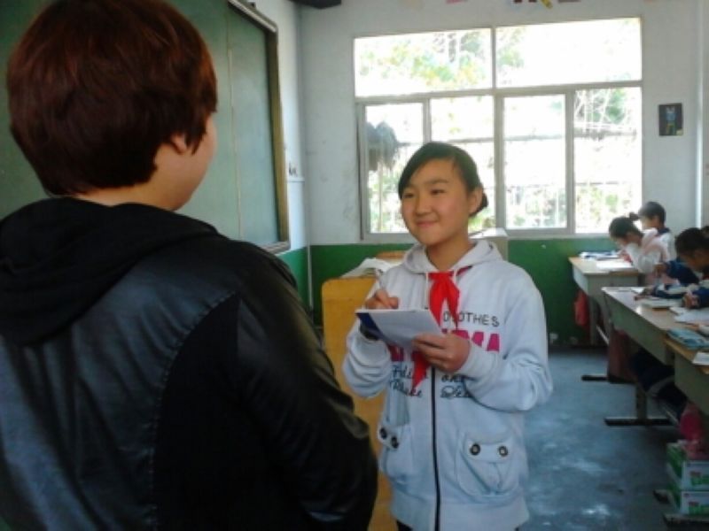 她的采访开始了,首先,童丽萍很有礼貌的对何老师说:"何老师,我可以采访您吗?"何老师面带微笑的答应了她的请求。何老师对这些问题一一做了详细的回答。给我印象最深的是老师的对您对您的学生有什么看法?这一问题的回答:"我喜欢看孩子们举手的那一瞬间,让我从他(她)们眼中看出了自信,有时和孩子们在一起感到特别快乐,孩子们像一个个可爱的小天使。听到这里,我特别感动。