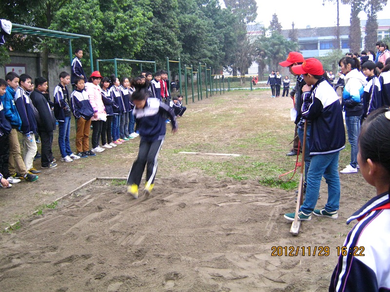 我们首先进行的是立定跳远,这是中考的考试项目之一,平时我们就已经开始训练了,冬运会就是对我们训练成果的最好检验。