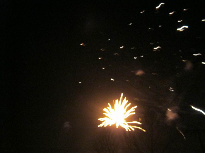 忽然,天空中绽出一朵大礼花,金光闪闪,丝丝缕缕,璀璨绚烂。我赶紧让爸爸妈妈观看。别人家的炮竹真是种类繁多,五彩缤纷。我的眼睛刚看了这边,那边又亮了,应接不暇。原来看爆竹也是一番别样的欣赏。