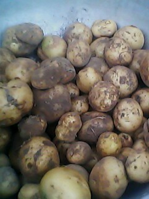 捡土豆的时候,一个手拿着袋子,另一只手找土豆,蹲在地上,捡几个,往前走几步,再接着捡,还要把地里的石头拣出去,以防影响第二年的播种。地很大,不知走了几个回合,总之很多很多,原本以为干完这些就可以了,可爷爷要求我再找一遍,为了不留下任何一个土豆。